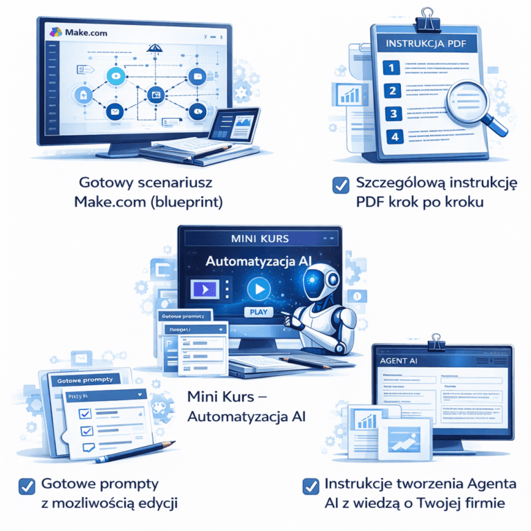 • Podstawowa znajomość WordPress i Make (do pakietu dodajemy szybki kurs Automatyzacji AI wystarczy do wykonania instrukcji).